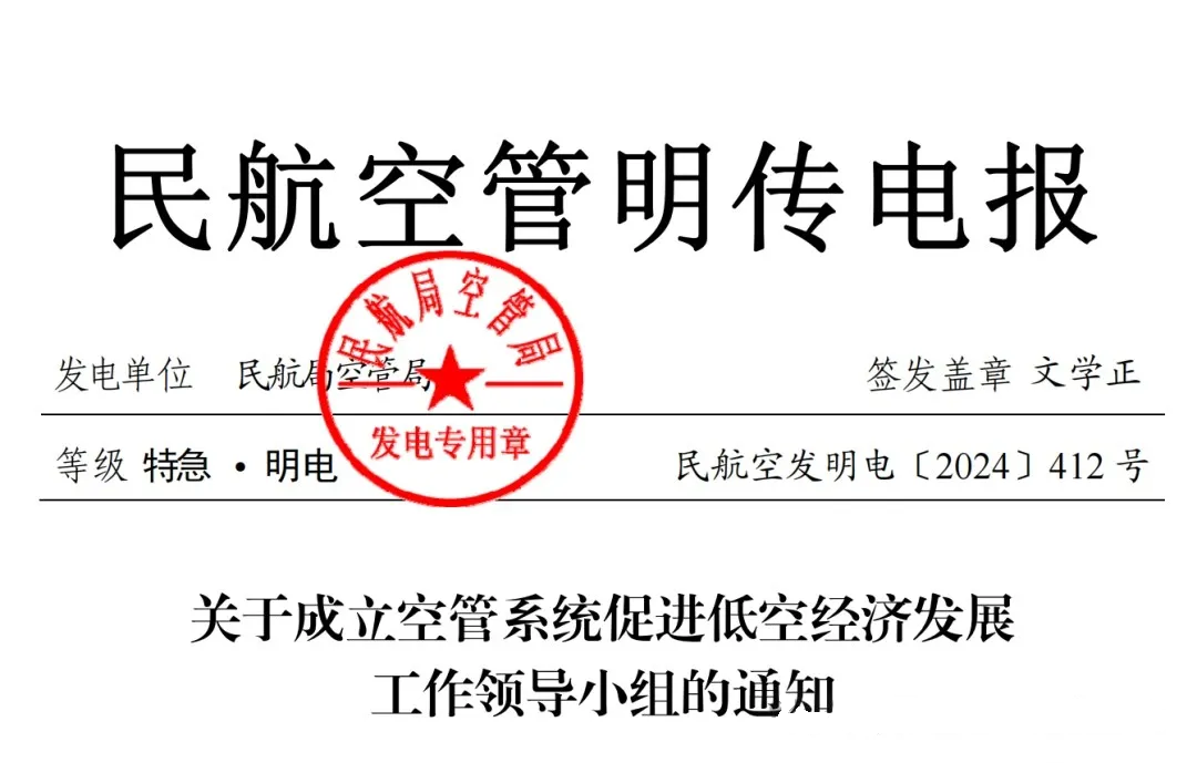 为全面贯彻落实党中央、国务院和民航局党组关于打造低空经济战略性新兴产业的重大决策部署,加强对空管系统相关工作的组织领导,促进低空经济高质量发展,经研究,成立空管系统促进低空经济发展工作领导小组。领导小组由民航局空管局党委书记文学正任组长。